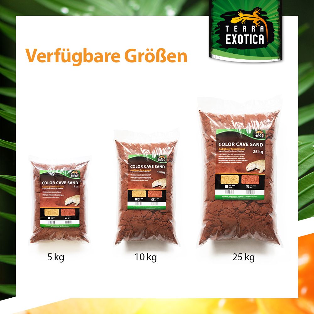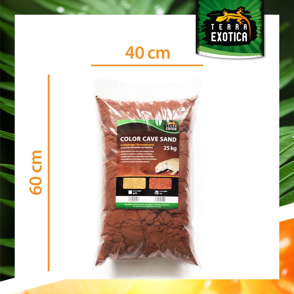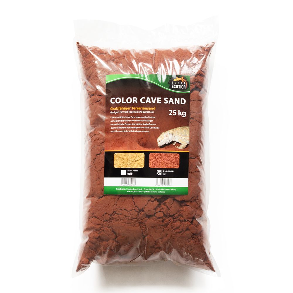 Der Terra Exotica Color Cave Sand – Rot ist ein 100 % natürliches Substrat, das speziell für grabende Reptilien, Wirbellose und Kleinsäuger entwickelt wurde. Ohne Farb- oder Zusatzstoffe ermöglicht der Sand das Anlegen von Höhlen, Gängen und Gräben, wodurch das natürliche Grabverhalten der Tiere gefördert wird.