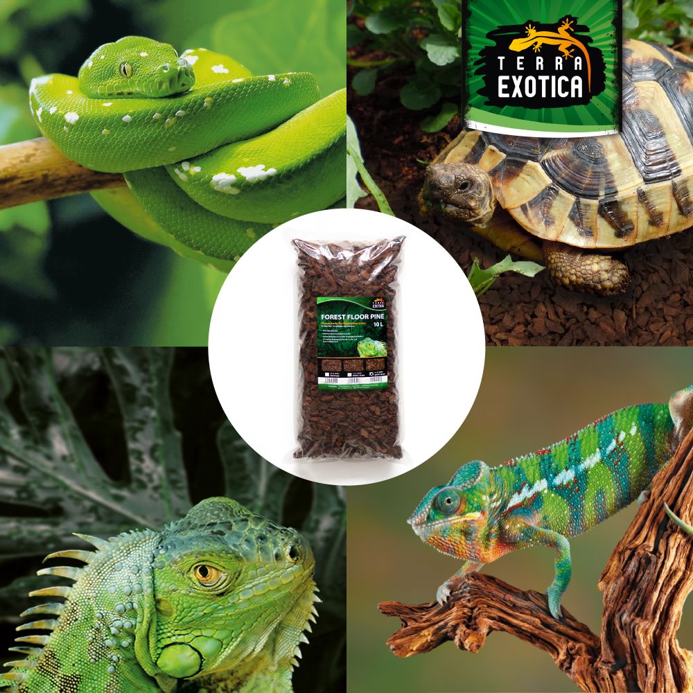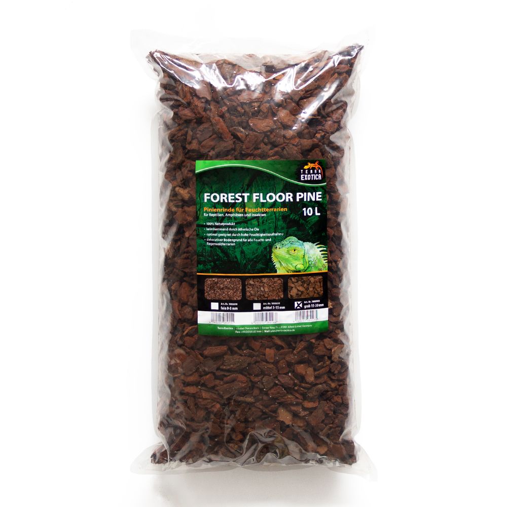 Terra Exotica Forest Floor Pine – Grob ist ein 100 % natürliches Substrat aus fein gesiebter französischer Pinienrinde (0–8 mm Körnung), ideal als Bodengrund für Feucht- und Regenwaldbewohner. Es unterstützt ein gesundes, humides Klima im Terrarium und trägt zur natürlichen Luftfeuchtigkeit bei.