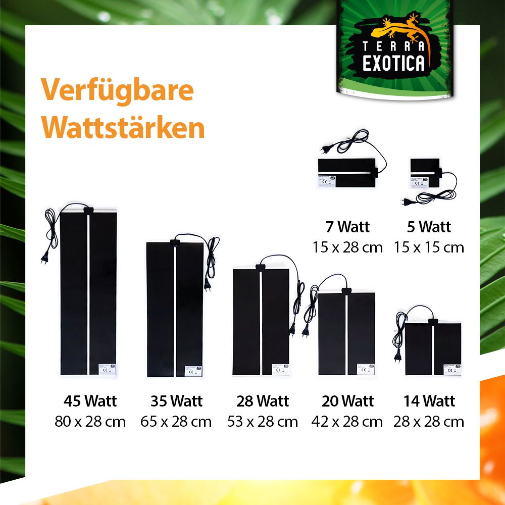 Die Standard Heizmatte bietet eine zuverlässige und konstante Grundheizung für Terrarien. Sie simuliert den durch die Sonne erwärmten Bodengrund und sorgt für eine angenehme, gleichmäßige Wärme – ideal für Reptilien, Amphibien und andere Terrarientiere. Durch ihre trockene Oberfläche erhöht sie die Luftfeuchtigkeit nicht und ist somit besonders für trockene Lebensräume geeignet.