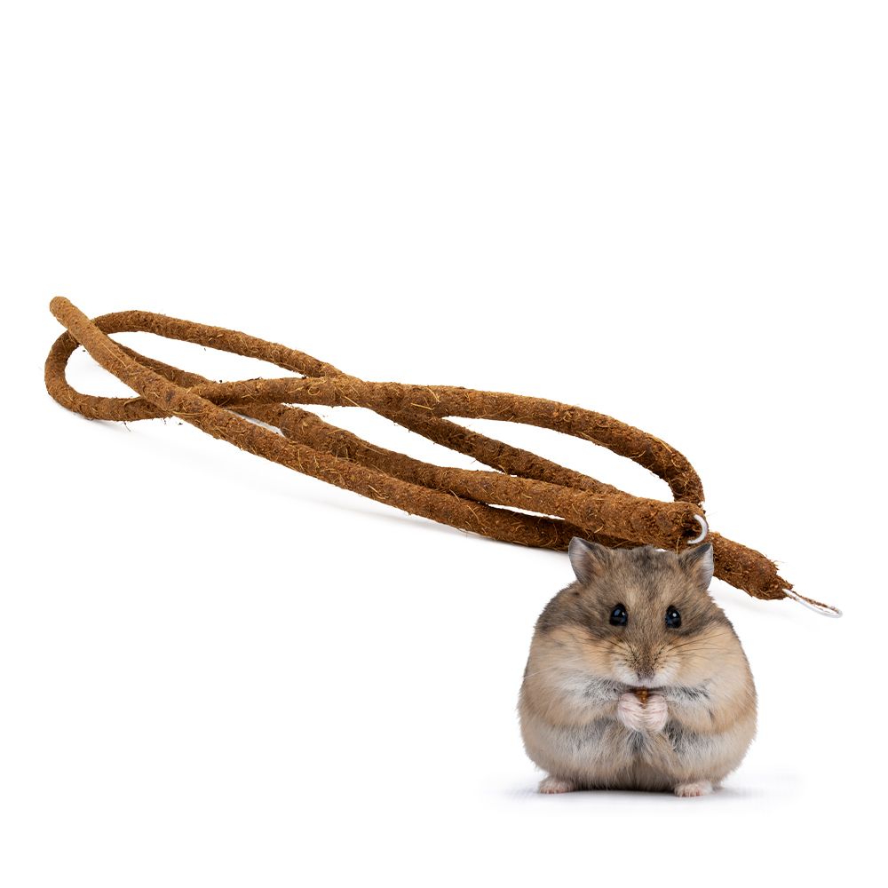 Dank der integrierten Haken lässt sich die Liane einfach aufhängen oder befestigen – ideal zur Gestaltung von Kletterwegen, Rückzugsorten und bepflanzten Bereichen. Ihre natürliche, rustikale Optik fügt sich harmonisch in jedes Terrarien- oder Volierendekor ein.