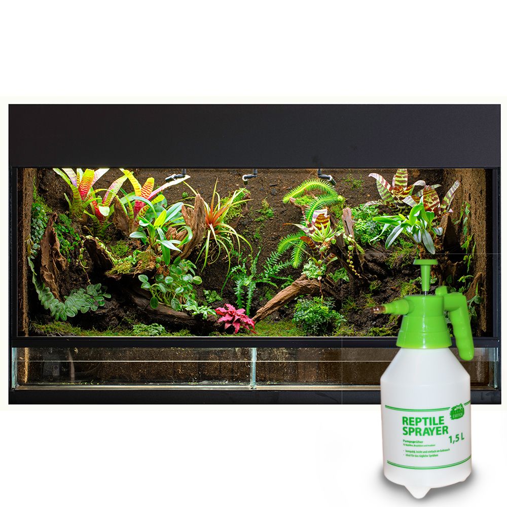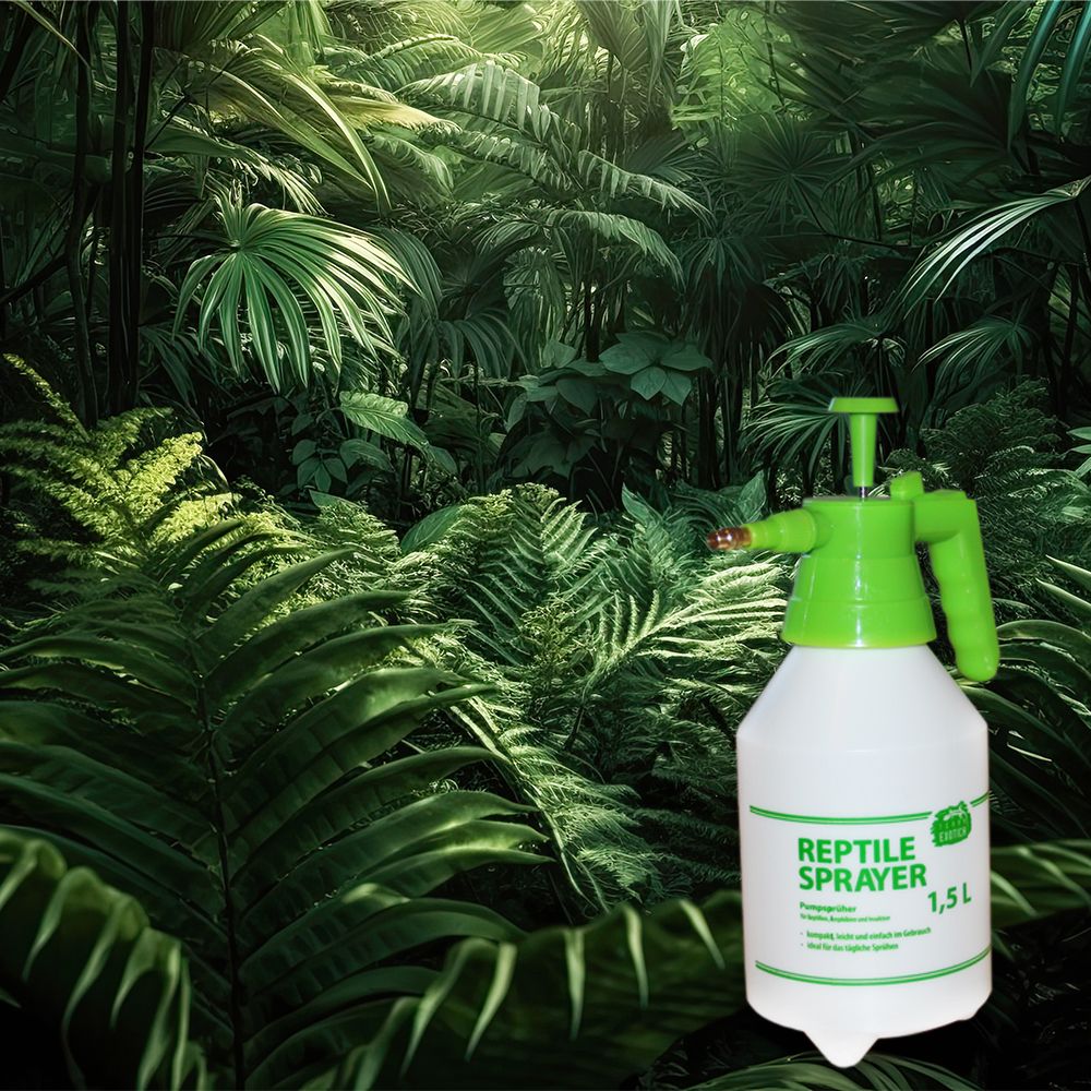 Der Terra Exotica Reptile Sprayer – 1,5 Liter ist ein leistungsstarker Pumpsprüher, der sich ideal für die tägliche Befeuchtung im Terrarium eignet. Mit nur wenigen Pumpstößen lässt sich ein Druck von bis zu 2,0 bar erzeugen, wodurch ein feiner, gleichmäßiger Sprühnebel entsteht – perfekt für Reptilien, Amphibien und tropische Pflanzen.